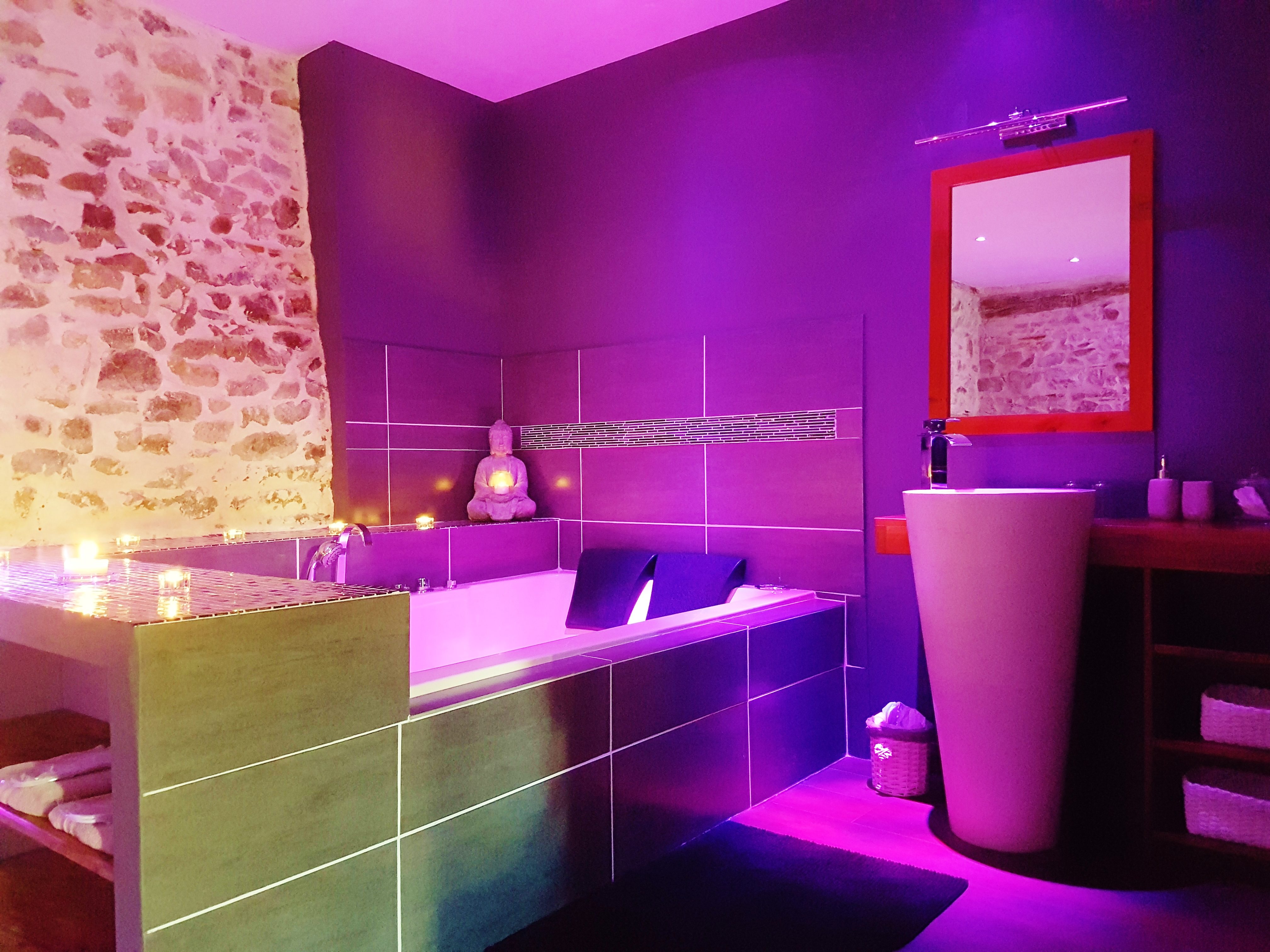 Notre suite est équipée d’un jacuzzi et d’un sauna privatifs pour vous offrir un moment de bien-être en toute intimité.